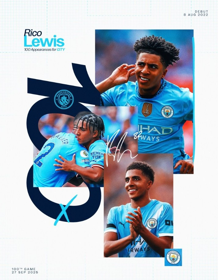 刘易斯在2022-23赛季为曼城一线队出场23次,2023-24赛季出场27次,2024-25赛季出场44次,而本赛季已经出场6次。至今为止已经打进5球助攻10次。尽管还很年轻,但刘易斯的未来充满了无限可能。曼城官网祝贺刘易斯达到这一新的职业生涯里程碑!